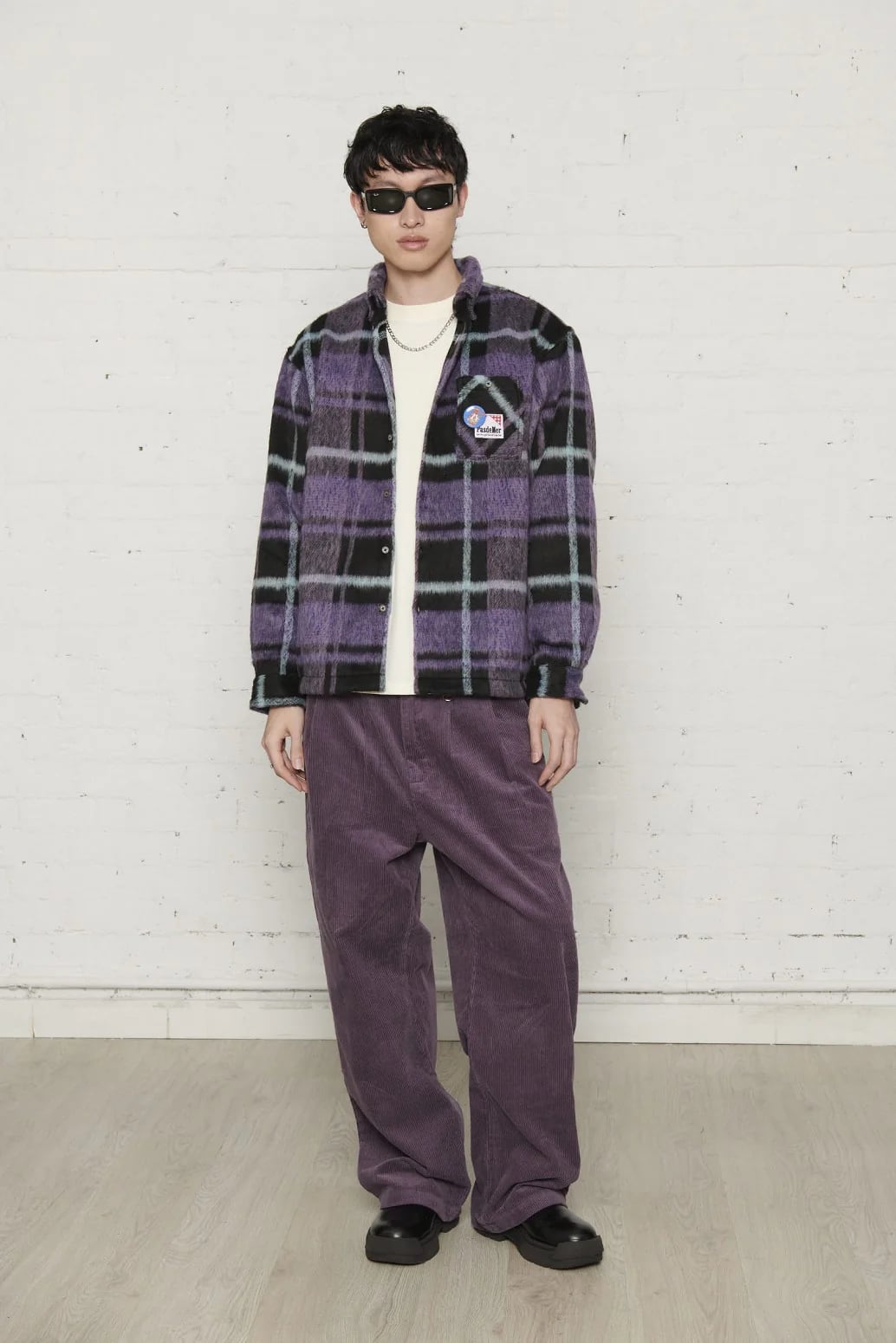 鮮やかなパープルのチェックが好印象な1枚です。