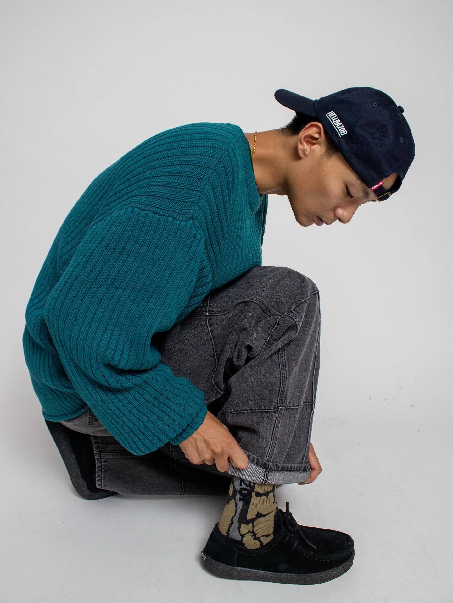 HELLRAZOR|BIG RIB CREW KNIT -2Color-"送料無料"