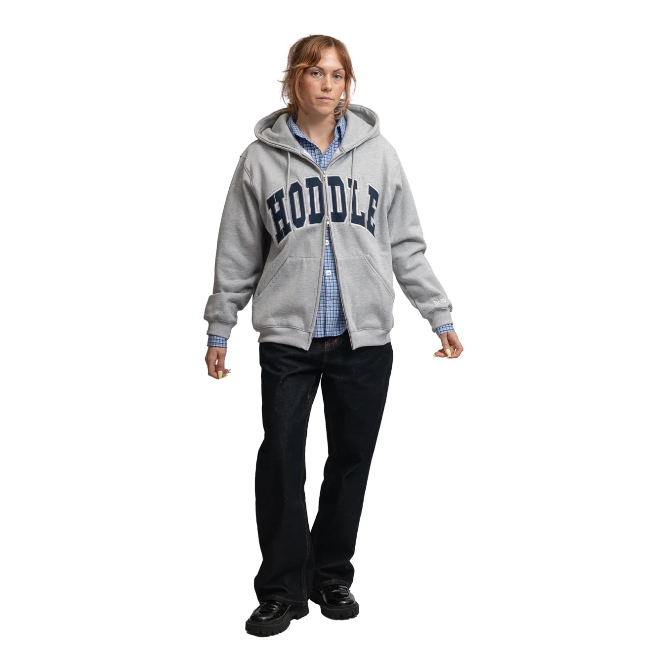 Front contrast plaid appliqué Stitched- down Hoddle logo