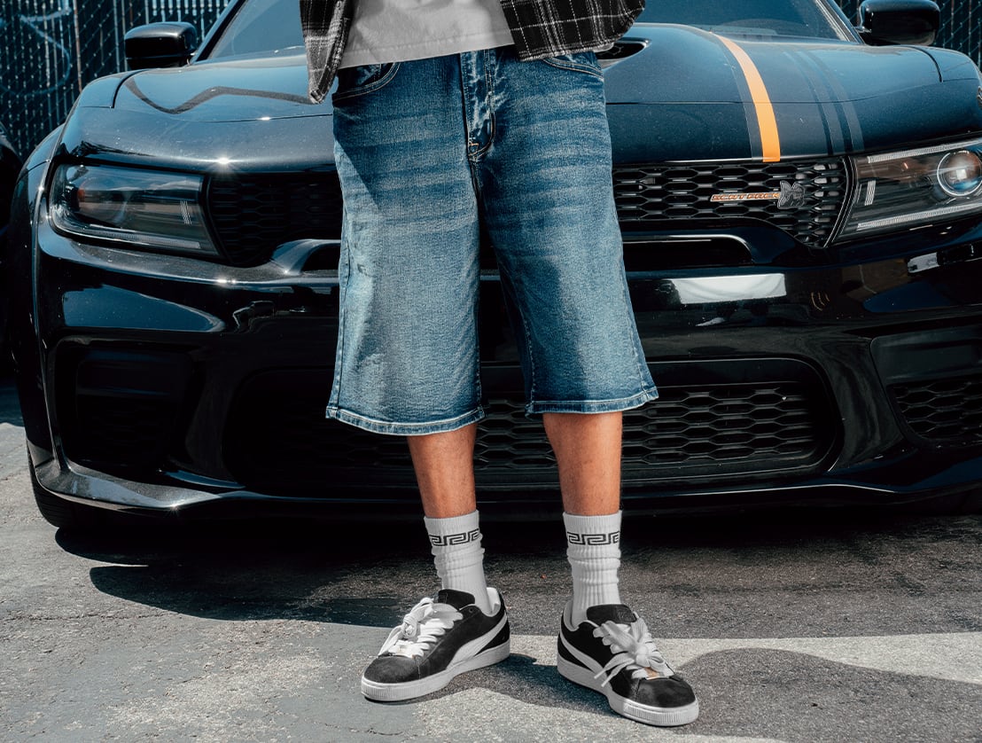 需要高まる"膝下シルエット"のバギーショーツ。