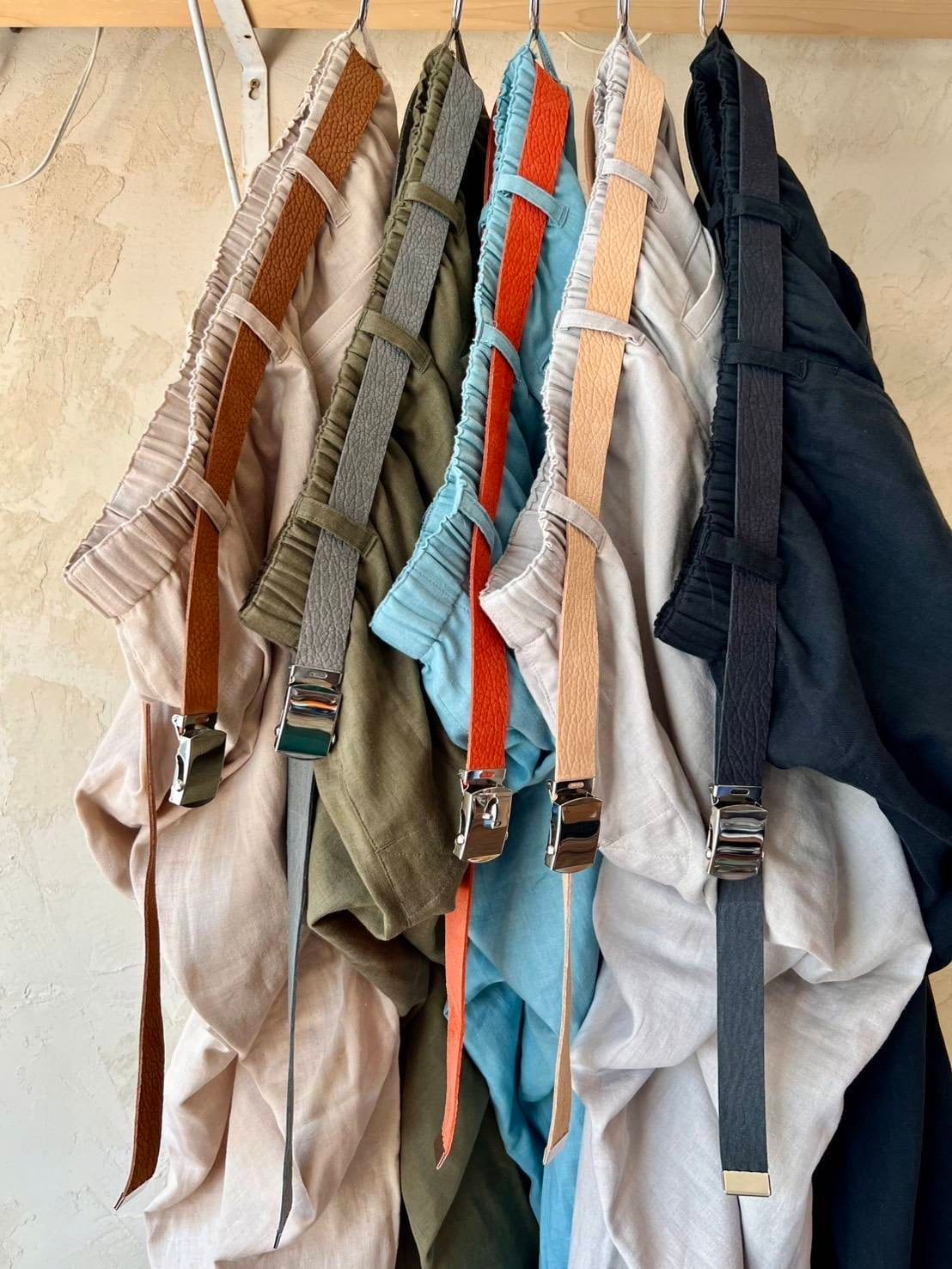 学生の頃、学ランの下のズボンのみイキってDickiesの黒のチノパン履いていて、スイス軍かどっかの薄いブルーのガチャベルつけてたのを思い出して、レザーでガチャベル作ってみました〜